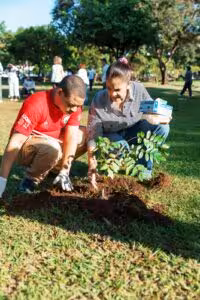 Los participantes plantaron 30 árboles de la especie Juan Primero, cuyo nombre científico es Simarouba glauca, en las cercanías de la Gobernación del parque Mirador Sur.