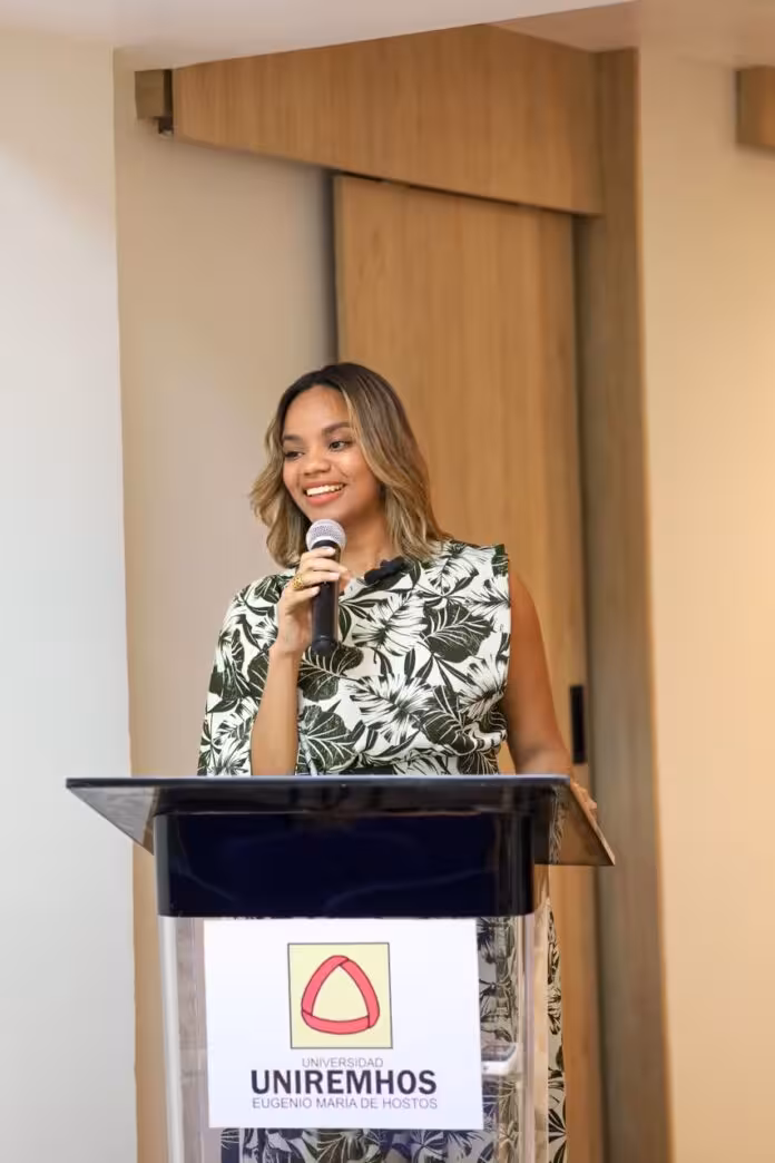 Con apenas 29 años, Angelina José, oriunda de Santo Domingo Este, Costa del Faro, encarna un perfil que rompe con los esquemas tradicionales de la política: abogada egresada de la Pontificia Universidad Católica Madre y Maestra (PUCMM), con maestría en Procedimiento Civil, una maestría en Compras y Contrataciones Públicas por la Universidad Nacional de San Martín y un posgrado en Dirección Pública en Barna Management School. Su formación no es un dato decorativo; es la base técnica sobre la cual sustenta su discurso y su práctica política.