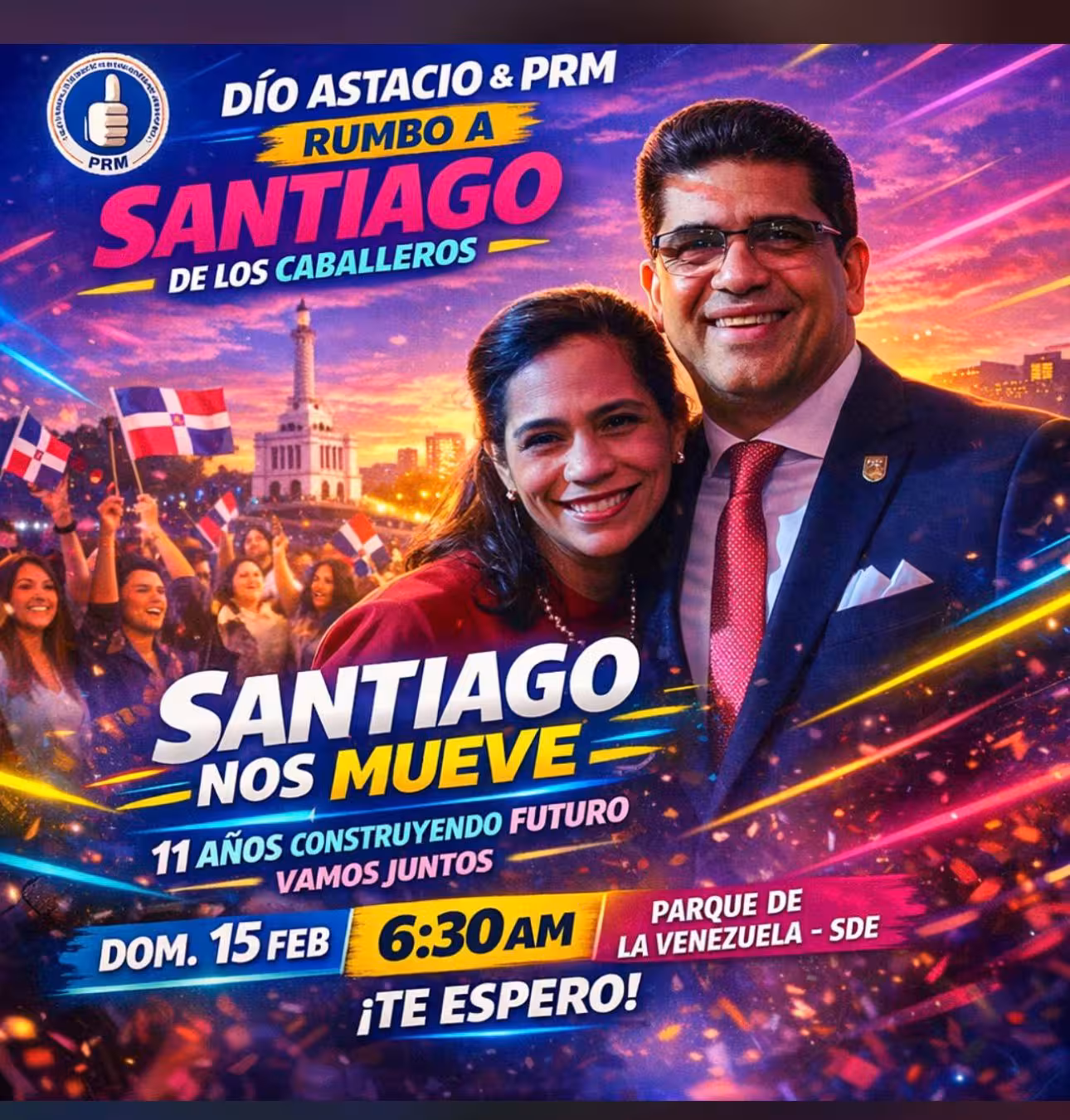 Santiago merece seguir avanzando y el PRM es el partido que garantiza el cambio y la transparencia. Este encuentro en la Arena del Cibao será un espacio para reafirmar nuestro compromiso con la gente y con el proyecto de transformación que encabeza nuestro presidente Luis Abinader”, expresó el alcalde.