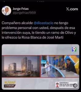 Frías dejó claro que no existe ningún conflicto de carácter personal con el alcalde, y que cualquier diferencia expresada se enmarca dentro del ejercicio democrático y la diversidad de criterios propios de la vida pública. “Compañero alcalde Dío Astacio, no tengo ningún problema personal con usted”, expresó el legislador.