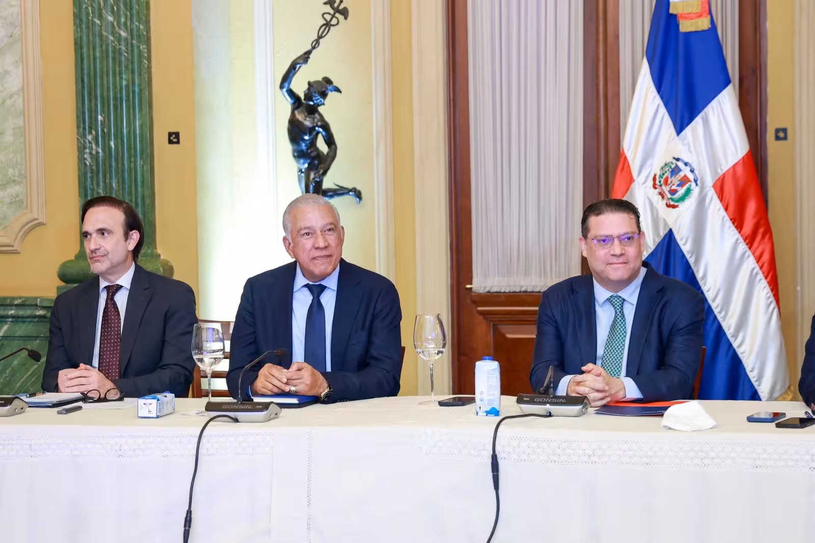 Acompañaron al mandatario los ministros de la Presidencia, José Ignacio Paliza; Administrativo de la Presidencia, Andrés Bautista; de Industria, Comercio y Mipymes, Eduardo Sanz Lovatón y de Vivienda y Edificaciones, Víctor -Ito- Bisonó, así como el vocero de la Presidencia, Félix Reyna.