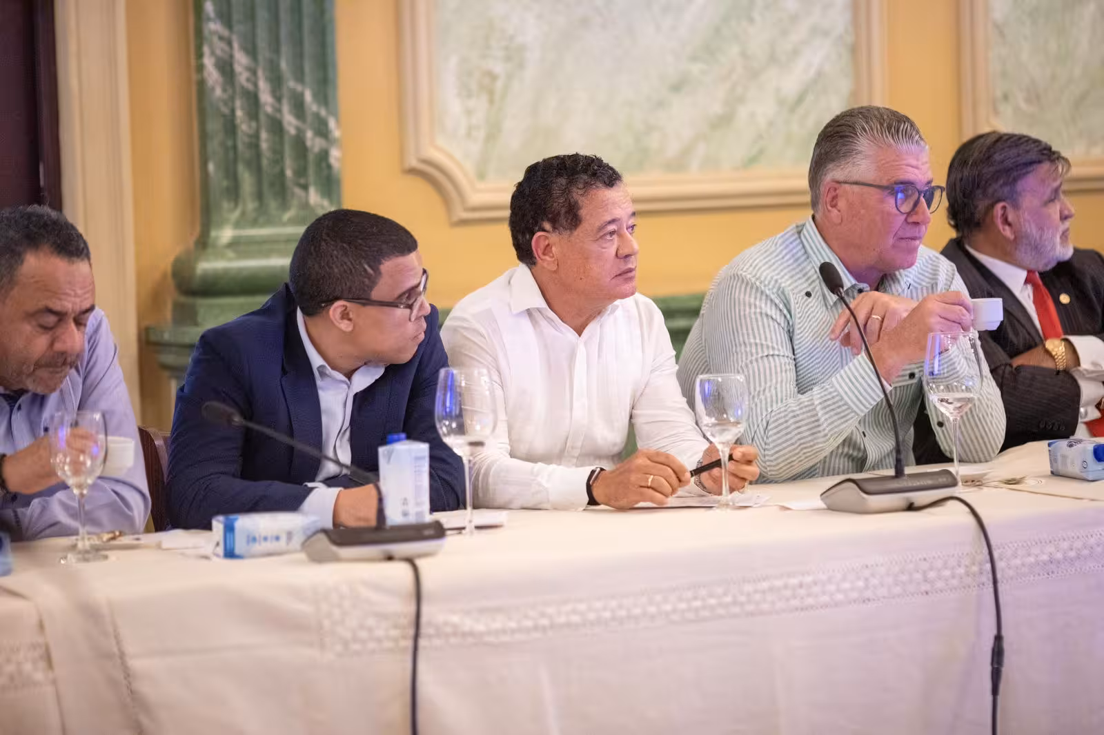 En la reunión con el presidente Abinader participaron los principales dirigentes del Consejo Nacional de la Empresa Privada( CONEP); Asociación de Industrias de la República Dominicana (AIRD); la Organización Nacional de Empresarios Comerciales (ONEC); Unión Nacional de Supermercados Económicas (ÚNASE); Junta Agropecuaria Empresarial entre otros representantes empresariales y comerciales del país.