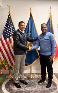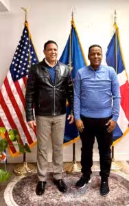 AGENDA ORIENTAL, SANTO DOMINGO. El regidor por Santo Domingo Norte, Leonardo Aquino, sostuvo un importante encuentro con el Assemblymember del Distrito 78 del Bronx, Nueva York, George Álvarez, con quien abordó diversos temas de interés orientados al fortalecimiento de la gestión municipal y al desarrollo de iniciativas que puedan ser implementadas en beneficio de los ciudadanos.