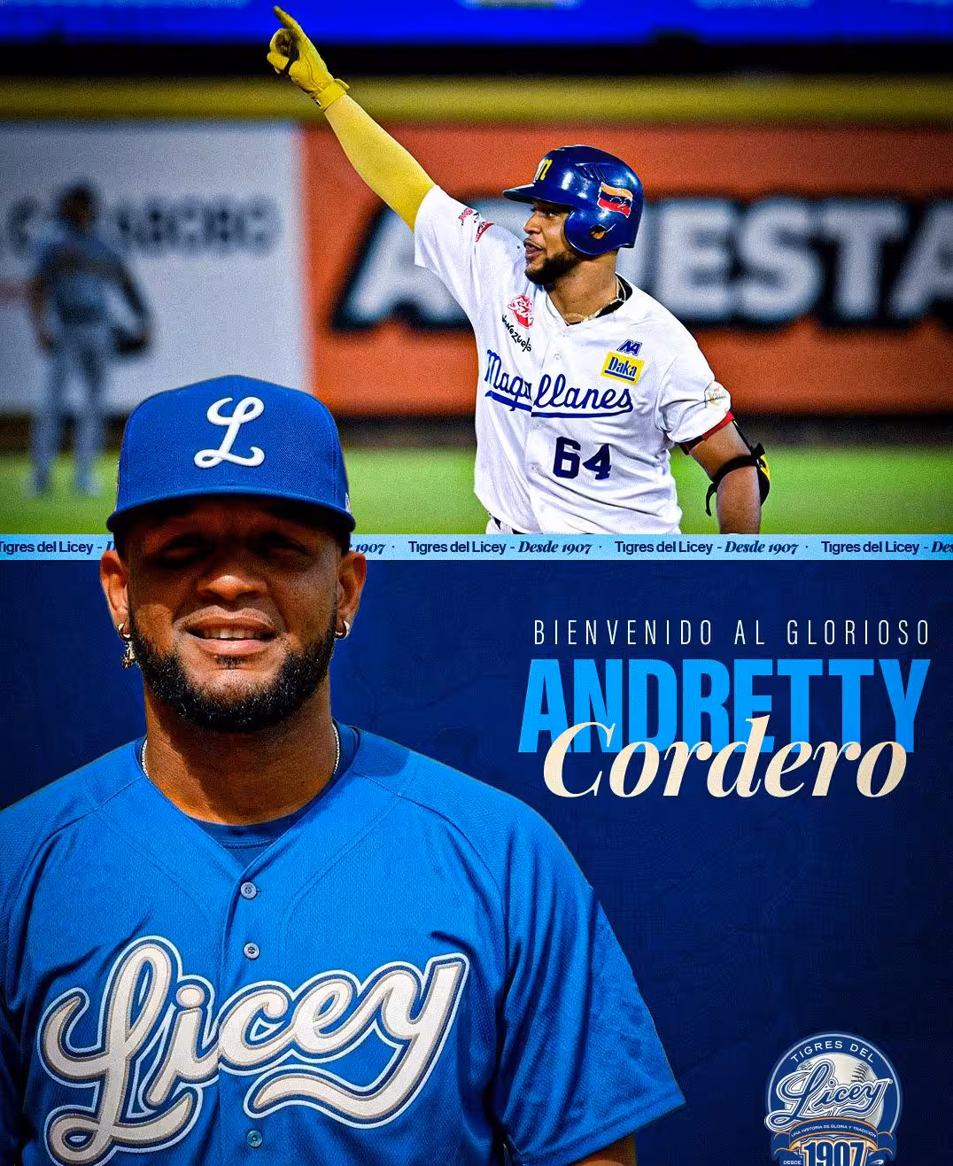 AGENDA ORIENTAL, SANTO DOMINGO. Los Tigres del Licey adquirieron los servicios del infielder Andretty Cordero, quien llega vía la agencia libre para la temporada 2026-27 de la Liga de Béisbol Profesional de la República Dominicana.