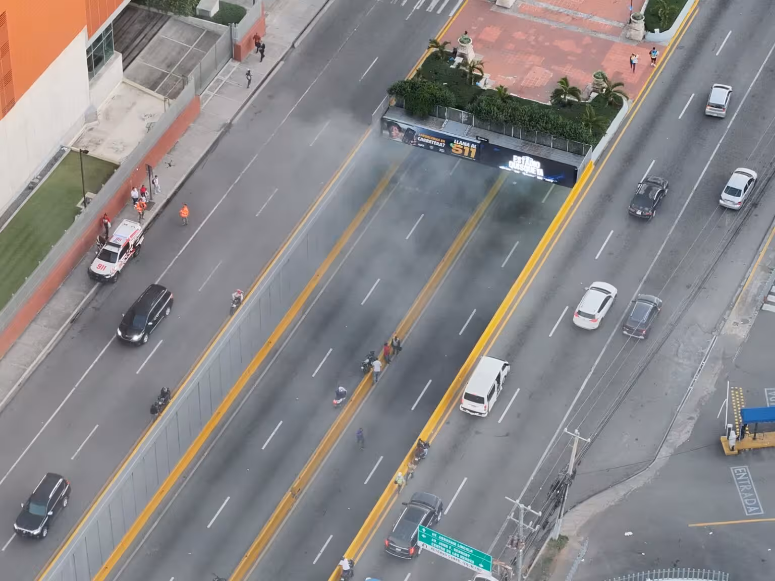 Se normaliza tránsito tras incendiarse vehículo en túnel de la 27 de Febrero