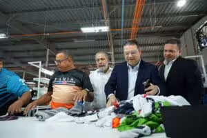 El Parque Zona Franca de La Vega también alberga empresas del sector agroindustrial y actualmente mantiene todas sus naves ocupadas, reflejando una alta demanda y estabilidad operativa. Durante la visita, se discutieron las oportunidades de expansión de Sakira Manufacturing y otras empresas textiles, así como la posibilidad de construir una nave destinada al uso de asociaciones de productores agroindustriales, lo que permitiría diversificar la actividad productiva del parque.